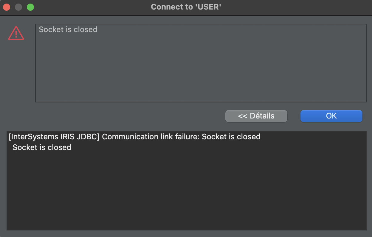 [InterSystems IRIS JDBC] Communication link failure: Socket is closed