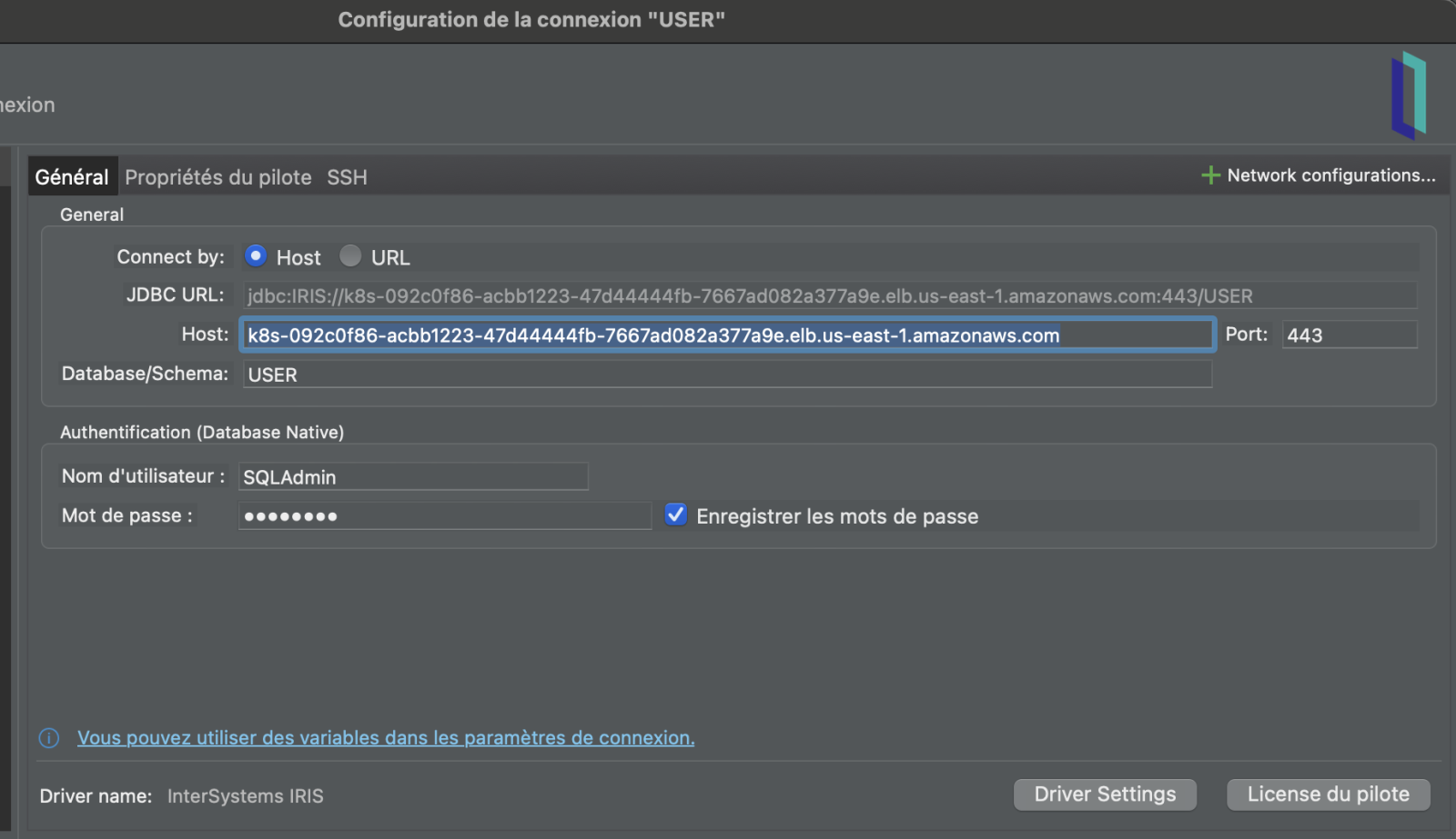 "jdbc:IRIS://k8s-092c0f86-acbb1223-47d44444fb-7667ad082a377a9e.elb.us-east-1.amazonaws.com:443/USER";