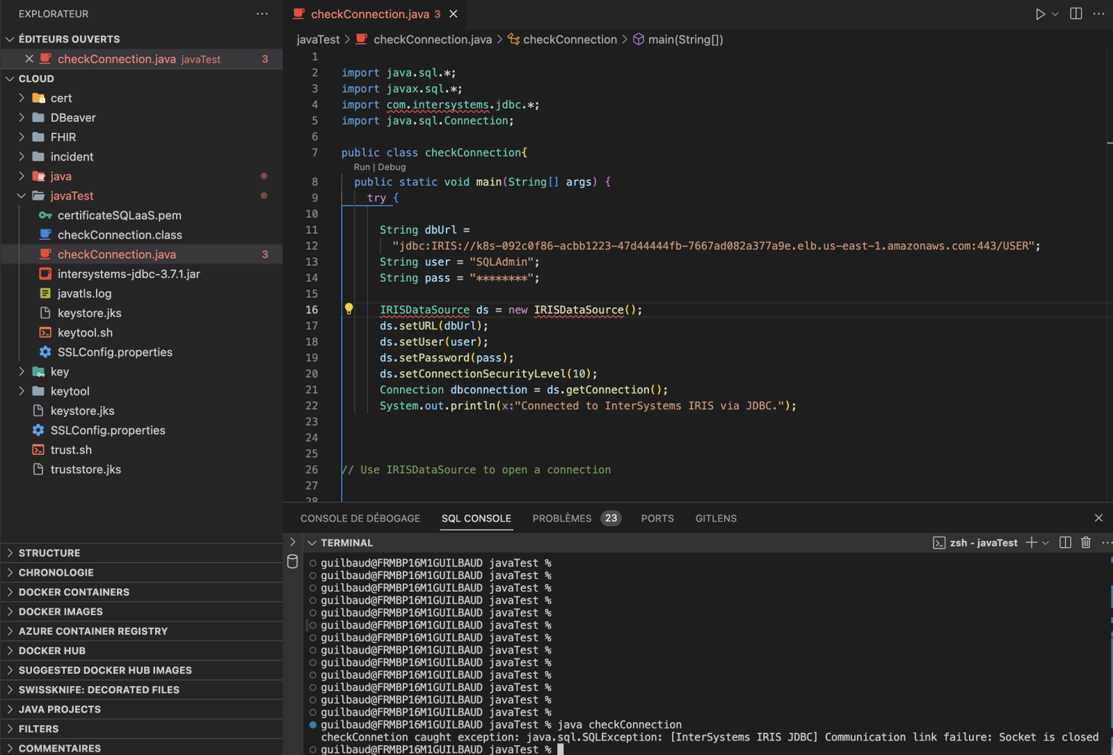 java checkConnection checkConnection caught exception: java.sql.SQLException: [InterSystems IRIS JDBC] Communication link failure: Socket is closed