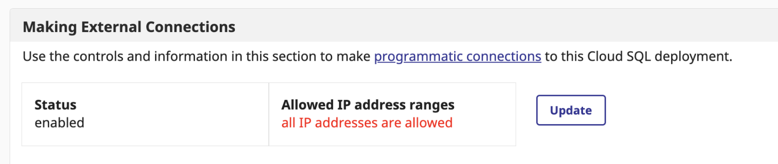 has your Cloud SQL deployment been enabled for external connections? Please see https://docs.intersystems.com/services/csp/docbook/DocBook.UI.Page.cls?…;