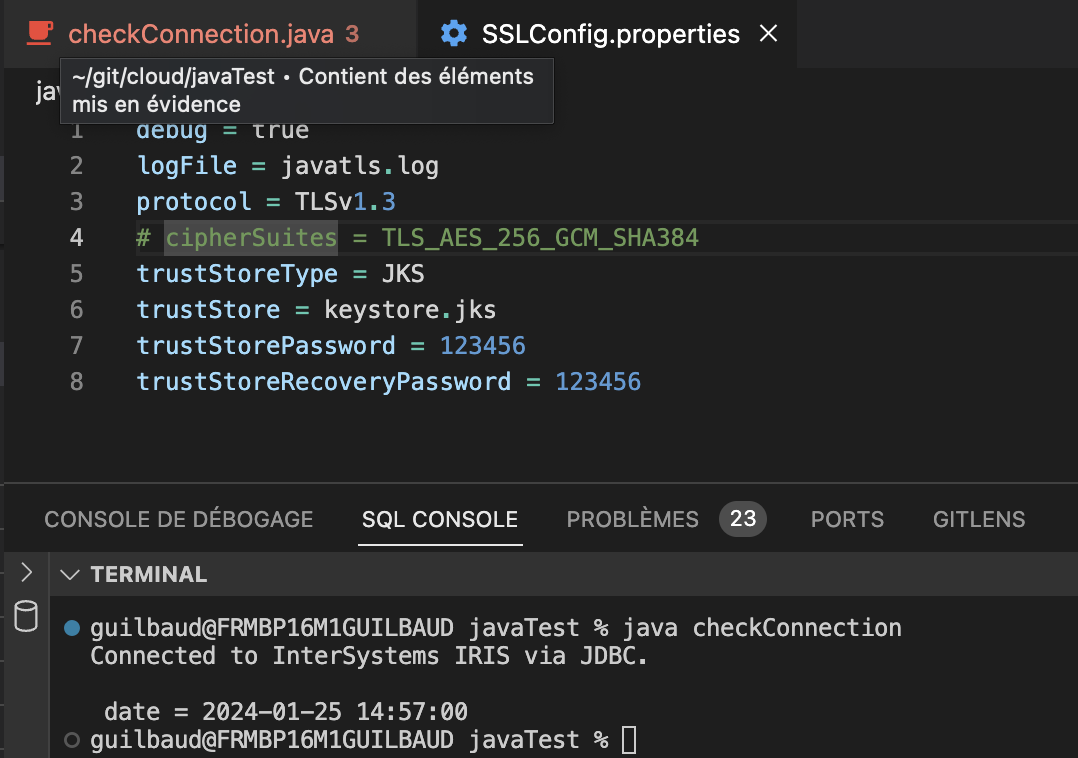 } // end class checkConnectionAs you can see keystore.jks and SSLConfig.properties are in the same directory as the java class :