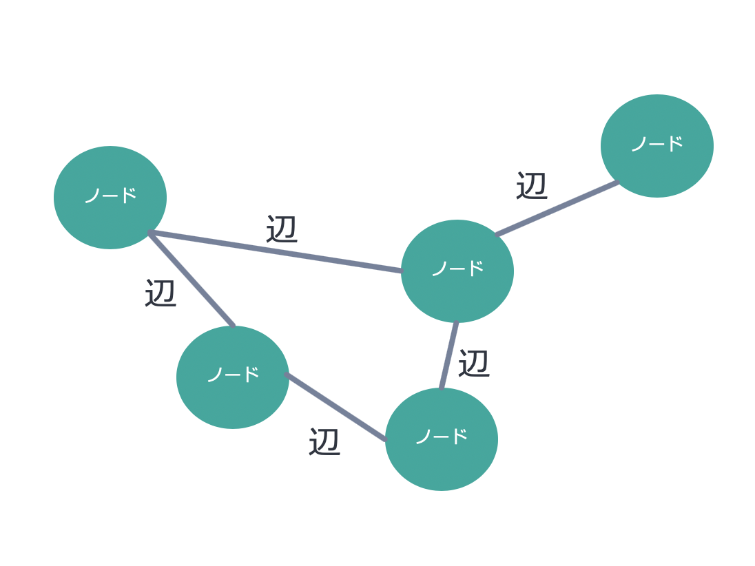 La figure suivante présente les principes de base de la structure d'un graphe. Un graphe est constitué de nœuds et d'arêtes. Une arête relie deux nœuds.