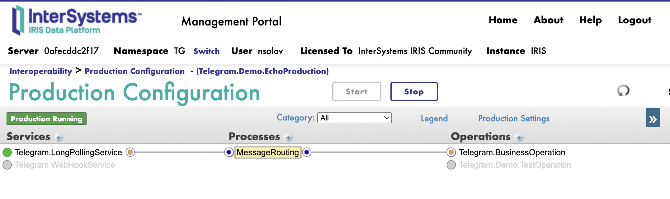 Le paquet telegram-adapter comprend non seulement l'adaptateur lui-même, mais aussi des services commerciaux prêts à l'emploi (Telegram.LongPollingService.cls et Telegram.WebHookService.cls), une opération métier (Telegram.BusinessOperation) et la classe de message Telegram.Request.