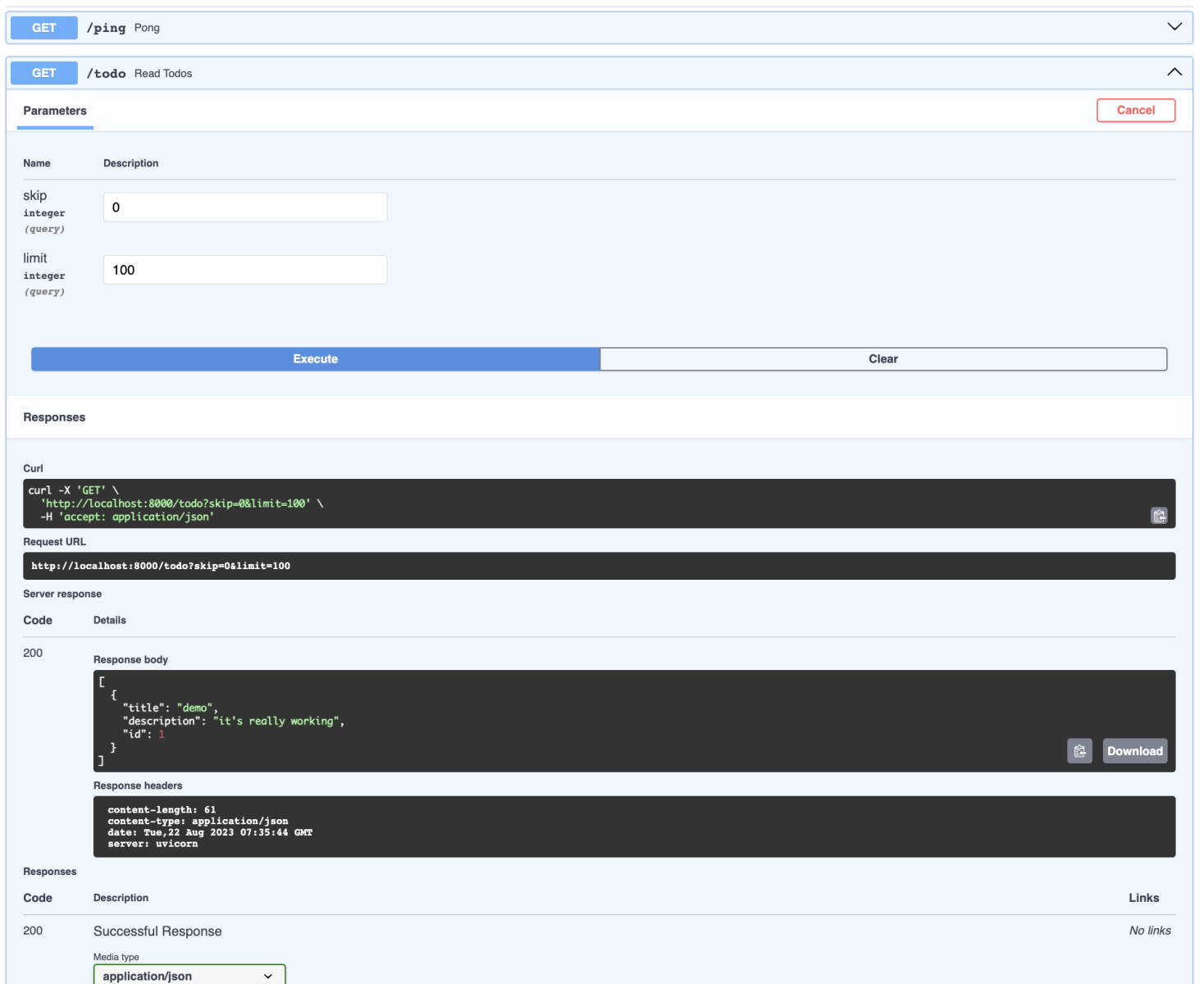 $ curl http://localhost:8000/ping {"ping":"pong!"}