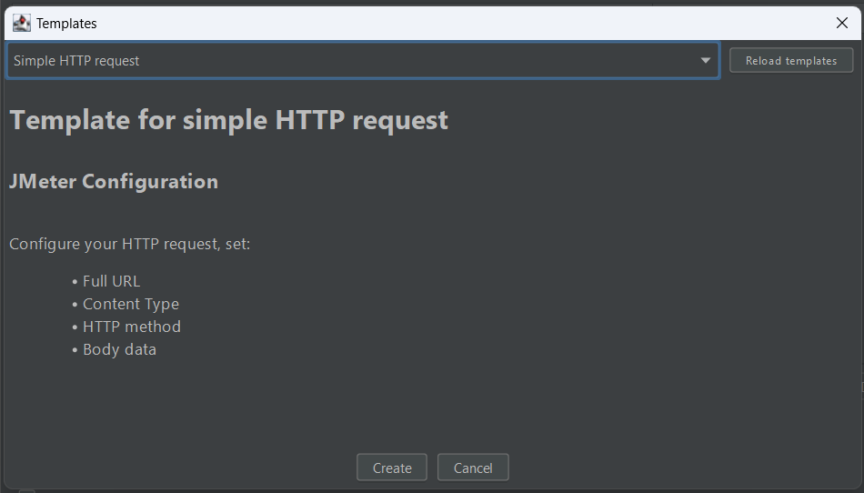- Sélectionnez la requête HTTP simple et cliquez sur le bouton Create (Créer) :
