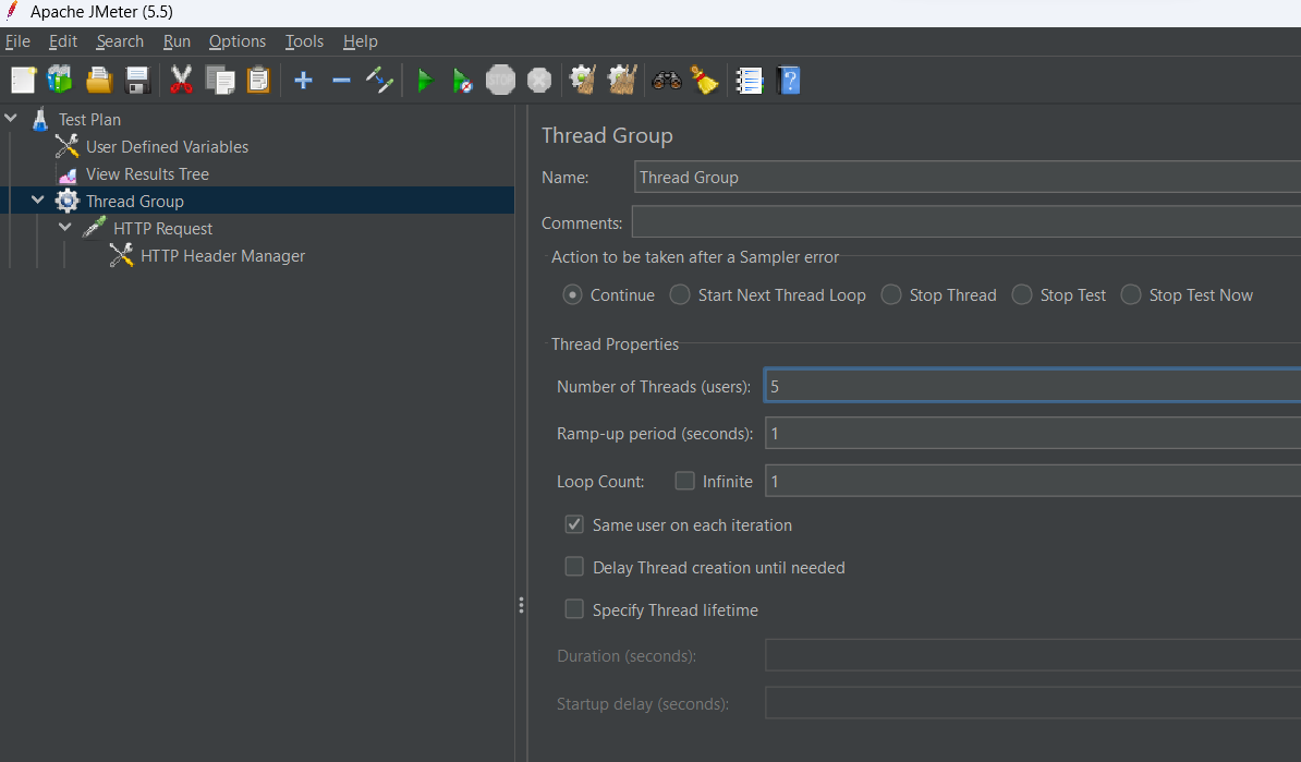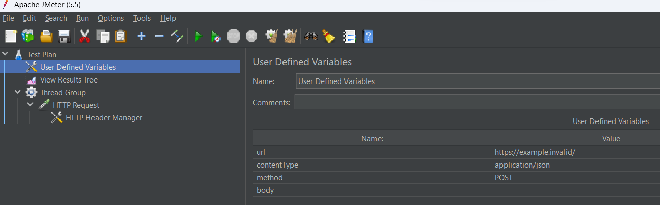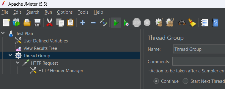 - À ce stade, vous avez créé plusieurs éléments JMeter :