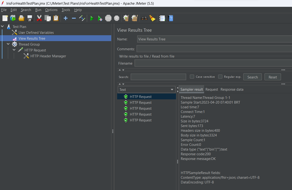 - Vous pouvez consulter les résultats de chaque demande dans la section Voir l'arborescence des résultats > l'onglet des résultats de l'échantillonneur :