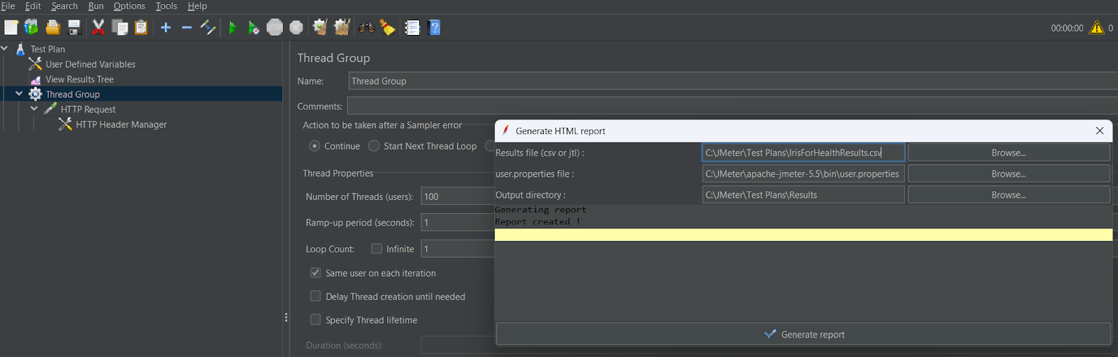 Exécution de JMeter