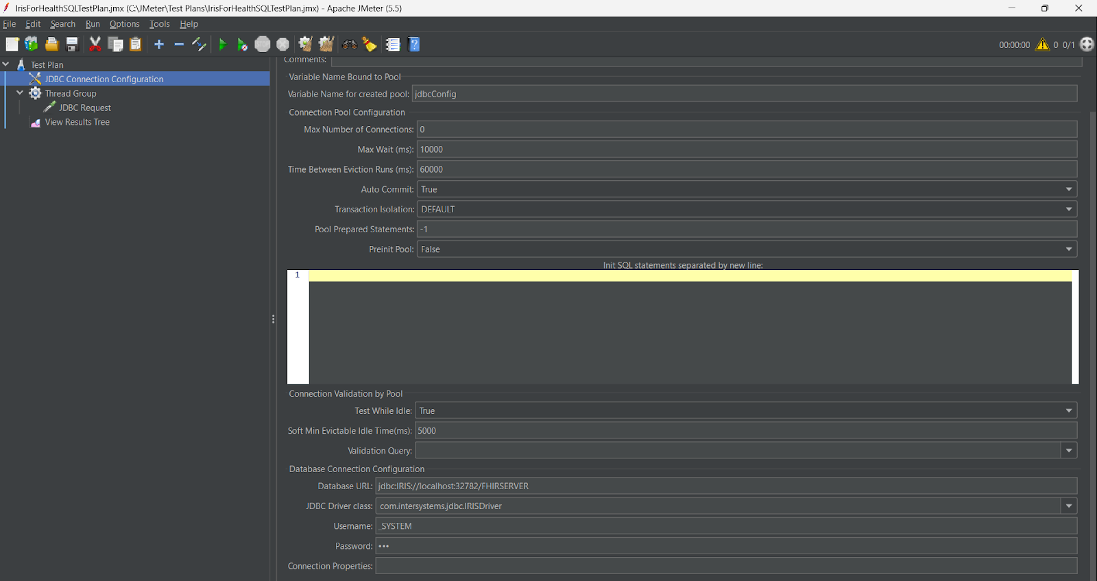 - URL de la base de données : jdbc:IRIS://localhost:32782/FHIRSERVER
