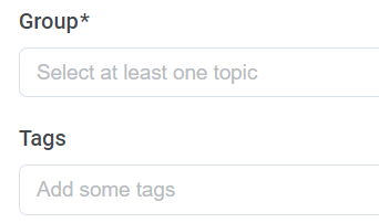 Après le champ Groupe, voici le champ Tags où vous pouvez ajouter des balises liées au contenu de votre message. Il y a pas mal de balises, donc il faut les choisir de manière responsable car d'autres personnes utilisent ces balises pour chercher ou trier les informations en cas de recherche.