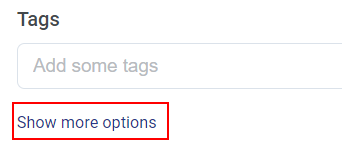Sous les balises, il y a un lien pour voir plus d'options. Il est possible d'y attacher un document pdf Attach a pdf document (par exemple, l'horaire de l'événement au format pdf) et de fournir le nom que vous souhaitez voir apparaître.