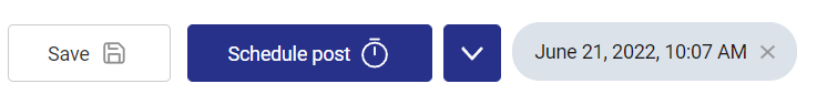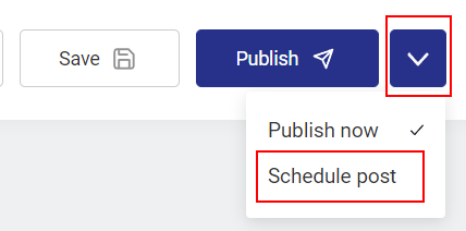 En outre, vous pouvez programmer la publication de votre message. Il suffit de cliquer sur la flèche vers le bas, de choisir le champ "Programmer le message" Schedule post, puis de définir la date et l'heure..