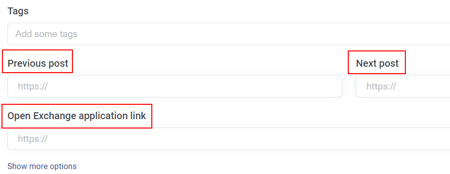 Donc, en résumé, si cet article/cette annonce (ou une branche d'une discussion) est lié(e) à un autre, vous pouvez ajouter le lien dans le champ Article précédent (Previous post), et, par conséquent, les autres membres de la communauté verront le bloc Articles connexes suivant à la fin de l'article
