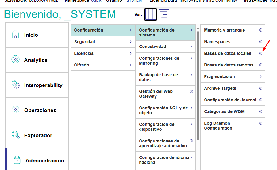 1. Accédez au portail et à la section Bases de données locales:
