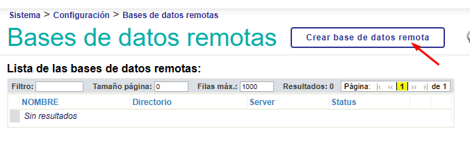 Et nous cliquons sur le bouton "Créer une base de données distante":