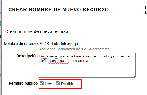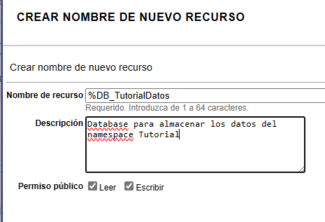 Nous attribuons le nom de la nouvelle ressource, nous mettons la description et, si nous le jugeons approprié, nous marquons les autorisations d'accès public: