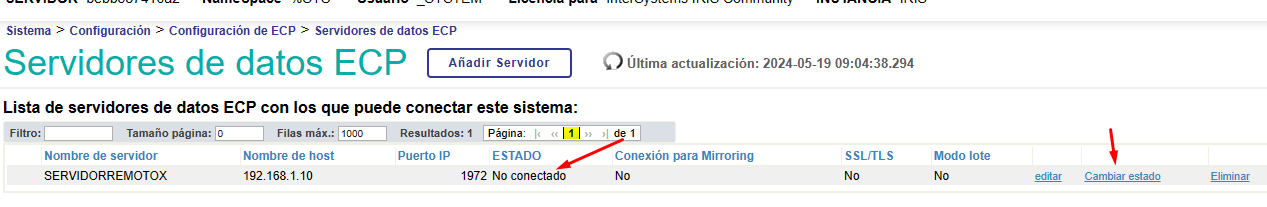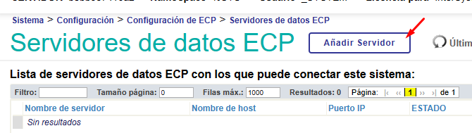 Nous cliquons sur le bouton "Serveurs de données":