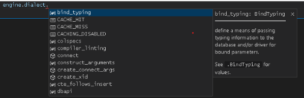 engine.dialectAvec l'extension IntelliCode de VSCode, vous pouvez rechercher toutes les options de cette propriété ou consulter le code source sur CaretDev's GitHub.