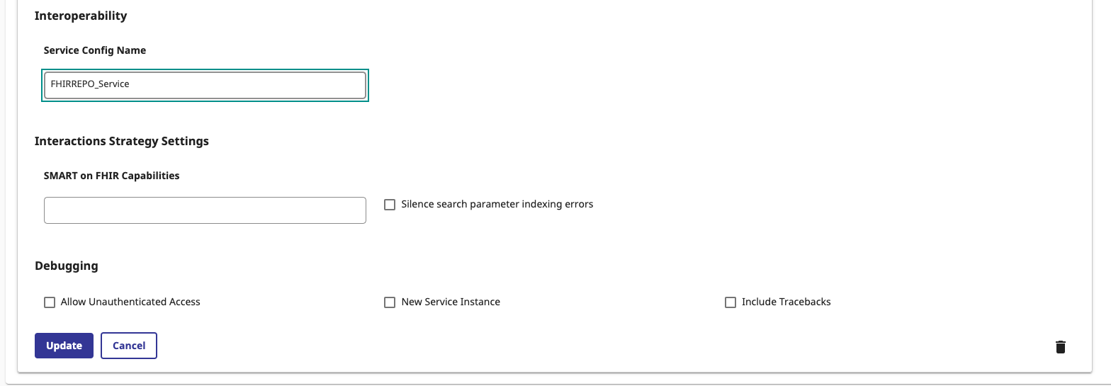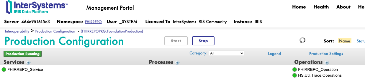 - HS.FHIRServer.Interop.Service, avec la propriété TraceOperations configurée à *FULL* et Target Config Name configurée à HS.FHIRServer.Interop.Operation name