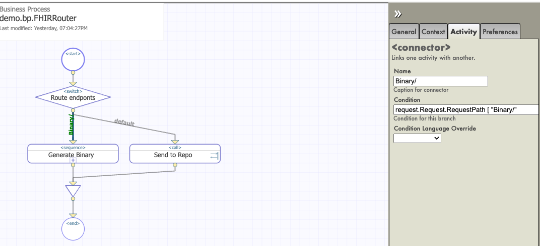 Jetons un coup d'œil au Business Process appelé FHIRRouter:
