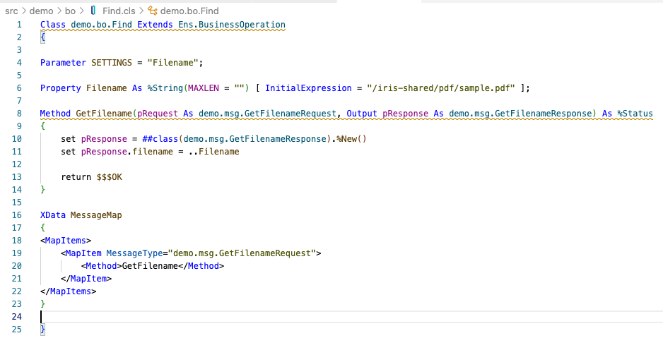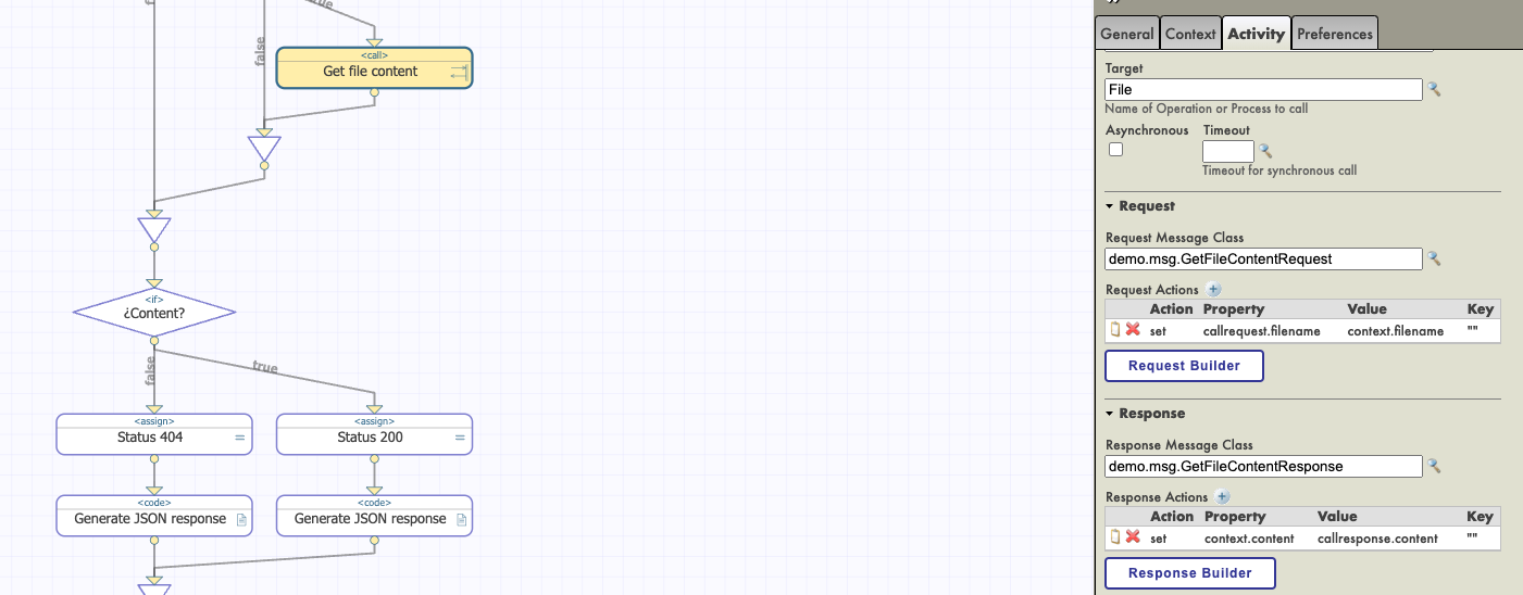 Si nous avons un nom de fichier, alors, nous appelons un autre Business Operation appelé File pour obtenir le contenu de ce fichier, encodé en base64: