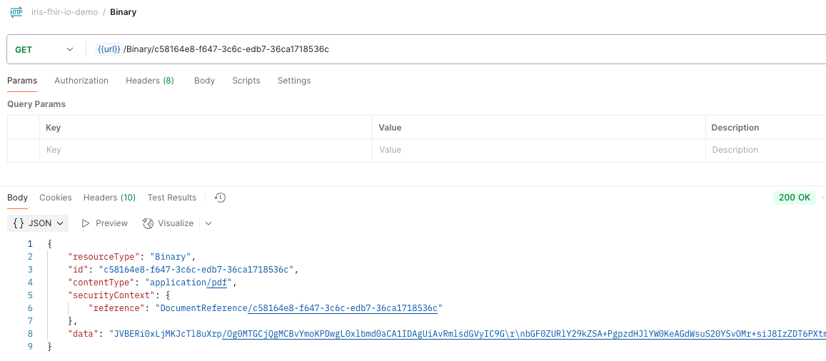 J'ai créé un exemple dans lequel, quand une ressource est demandée via "Binary", l'endpoint FHIR renvoie une réponse, comme si elle existait dans le référentiel.