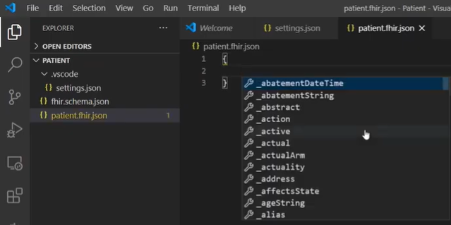 Aujourd'hui nous allons explorer comment créer et valider une ressource FHIR en utilisant le schéma FHIR à l'aide d'IntelliSense et de la fonctionnalité de complétion automatique dans VS Code.