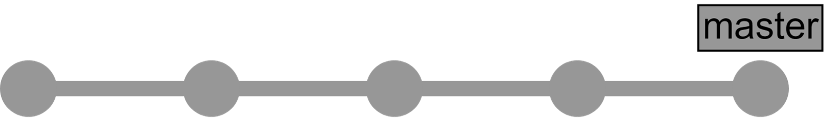 Sur cette image, on peut voir le référentiel avec deux commits (cercles gris), le second est la tête de la branche master. Après avoir ajouté d'autres commits, notre référentiel prend l'allure suivante :