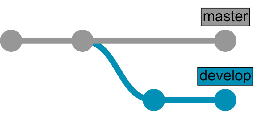 Désormais, deux développeurs travaillent en même temps et, pour ne pas interférer l'un avec l'autre, ils travaillent dans des branches séparées :