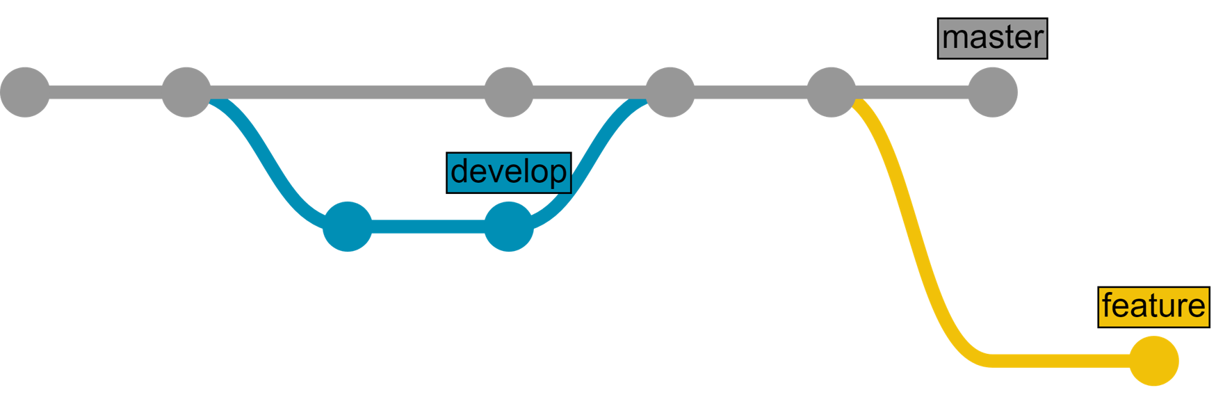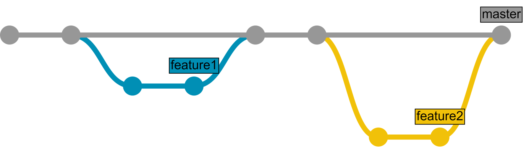C'est le cas le plus simple. Un développeur ne peut travailler que sur une seule modification à la fois. Cependant, le plus souvent, de nombreux développeurs travaillent simultanément sur différentes fonctionnalités et nous avons besoin d'un arbre de commits pour montrer ce qui se passe dans notre référentiel.