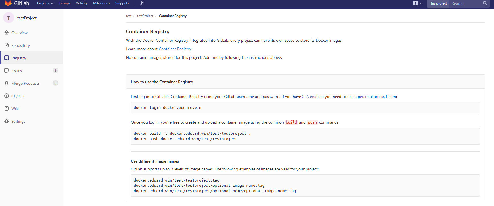 Remarque: GitLab contient un registre intégré. Vous pouvez l'exécuter à la place du registre externe. Lisez les documents GitLab liés dans ce paragraphe.