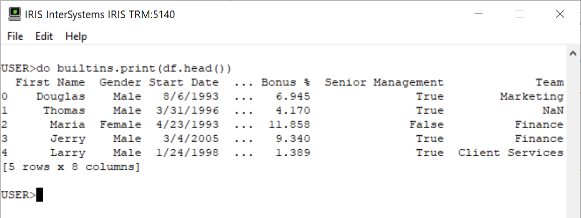 Set df = pd."read_csv"("C:\InterSystems\employees.csv")
