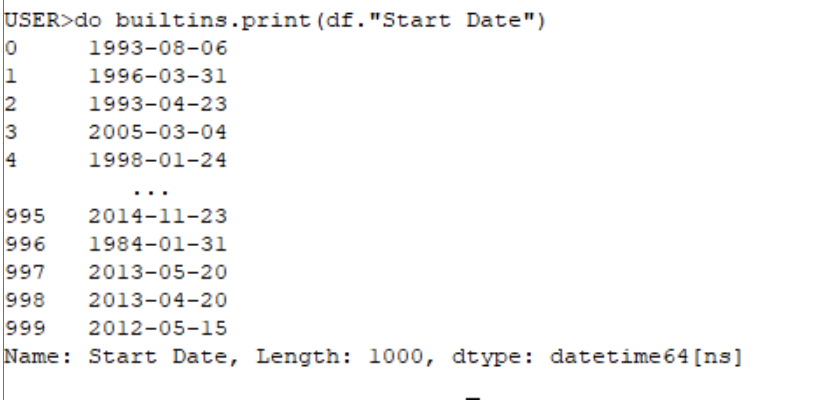 Set df."Start Date" = pd."to_datetime"(df."Start Date")l'ensemble de données mis à jour se présente comme suit.