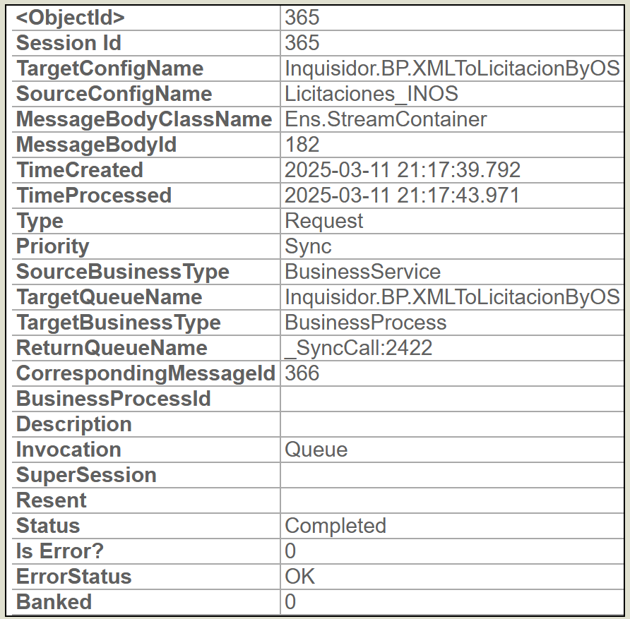 iris.cls(<span class="hljs-string">"Ens.Util.Log"</span>).LogInfo(<span class="hljs-string">"Inquisidor.BP.XMLToLicitacion"</span>, <span class="hljs-string">"VectorizePatient"</span>, <span class="hljs-string">"Terminado mapeo "</span>+licitacion[<span class="hljs-string">"titulo"</span>])
