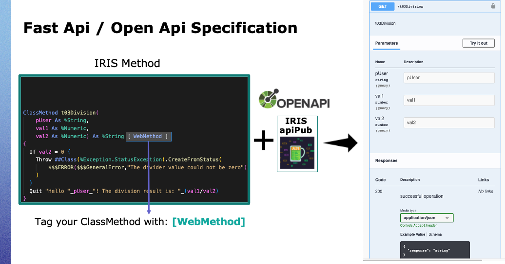 En marquant simplement la méthode IRIS avec l'attribut [WebMethod]. Quoi qu'il en soit, le framework se chargera de sa publication, en utilisant le standard OAS 3.x.