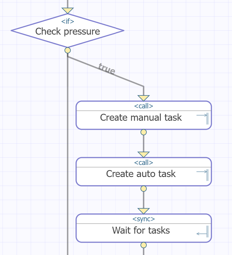 Si l'utilisateur clique sur le bouton Accepter de la tâche en attente, le flux restera en attente de la lecture du tensiomètre et ne passera pas aux étapes suivantes. Une fois que la tâche manuelle est acceptée et qu'une nouvelle lecture du tensiomètre est reçue, dans laquelle les limites marquées sont à nouveau dépassées, le système génère deux nouvelles tâches d'avertissement, l'une pour le patient et l'autre pour le médecin associé, afin de l'avertir d'une crise possible: