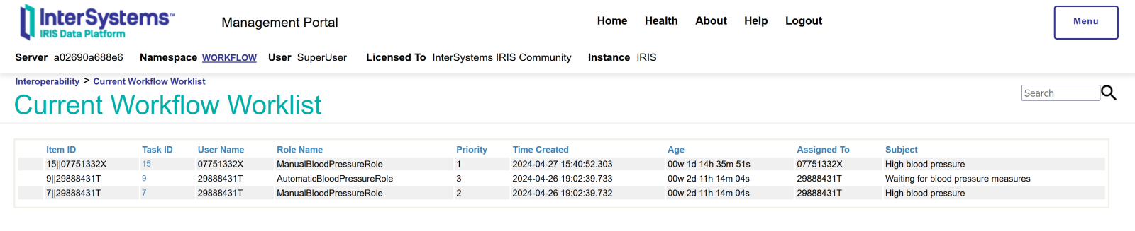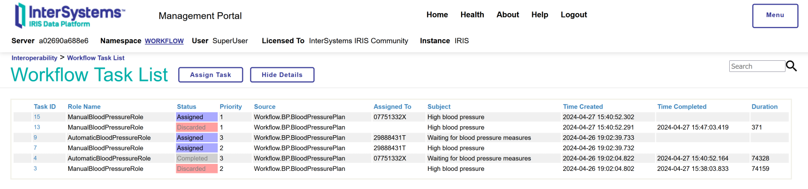 Comme vous l'avez vu dans les captures d'écran ci-jointes, l'interface utilisateur fournie par InterSystems IRIS pour la gestion des tâches est, pour le moins, assez spartiate, mais l'un des avantages que nous avons avec IRIS est que nous pouvons créer notre propre API REST pour gérer notre flux de tâches d'une manière très simple, nous discuterons de ce point dans notre dernier article.