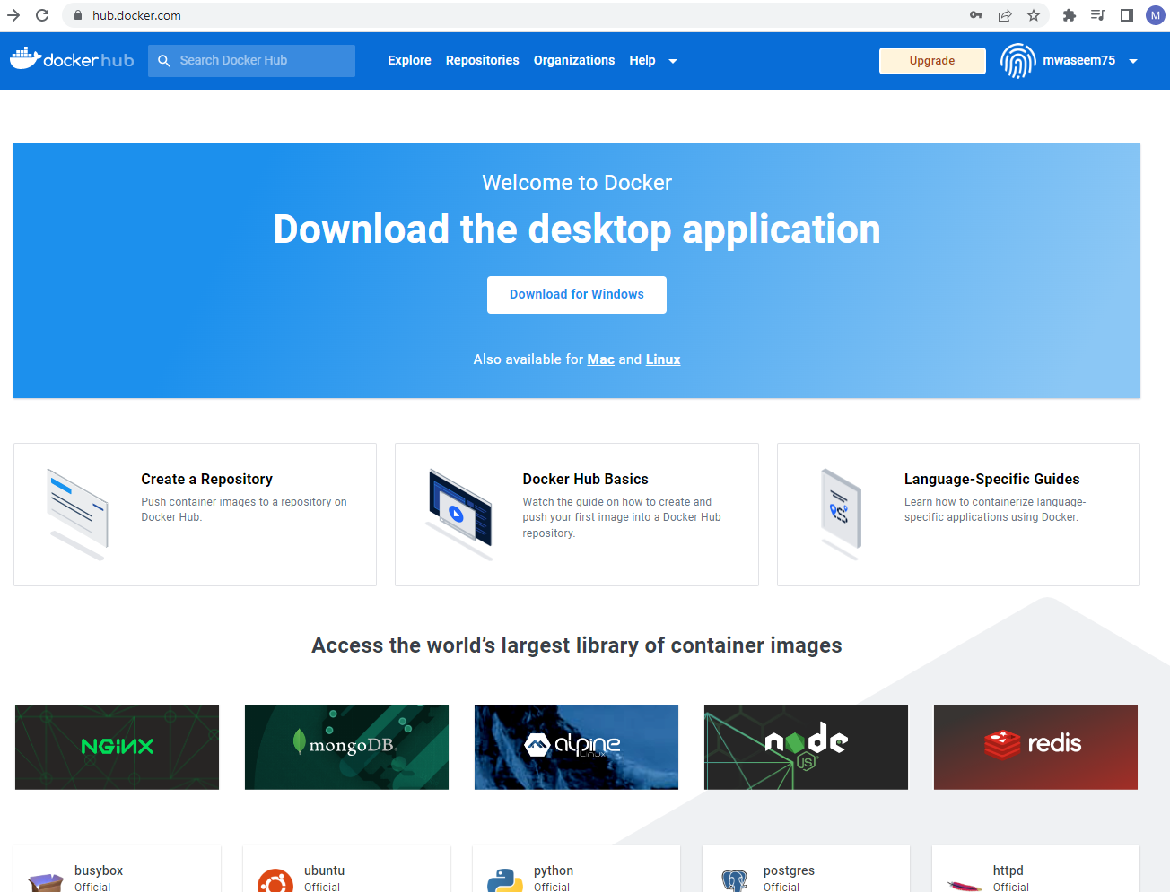 Docker héberge l'un des plus grands référentiels Docker, appelé Docker Hub.