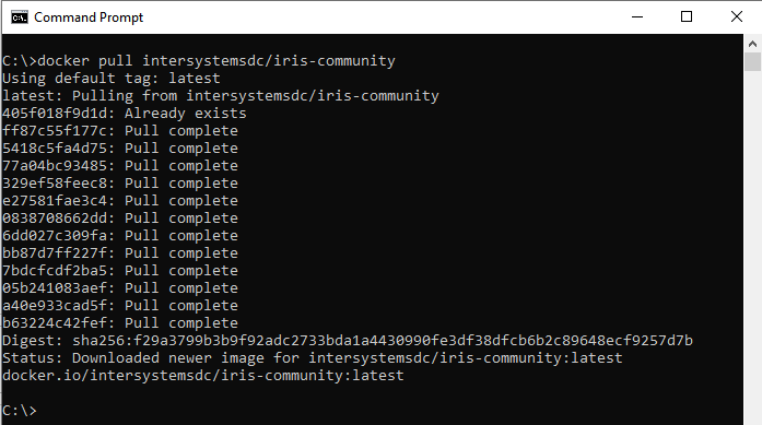 Extrayons l'image intersystemsdc/iris-community du hub Docker.