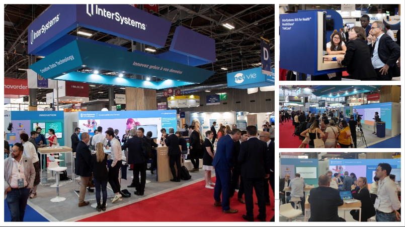 Accueil sur le stand InterSystems lors du salon SANTEXPO du 23 au 25 mai 2023, Paris