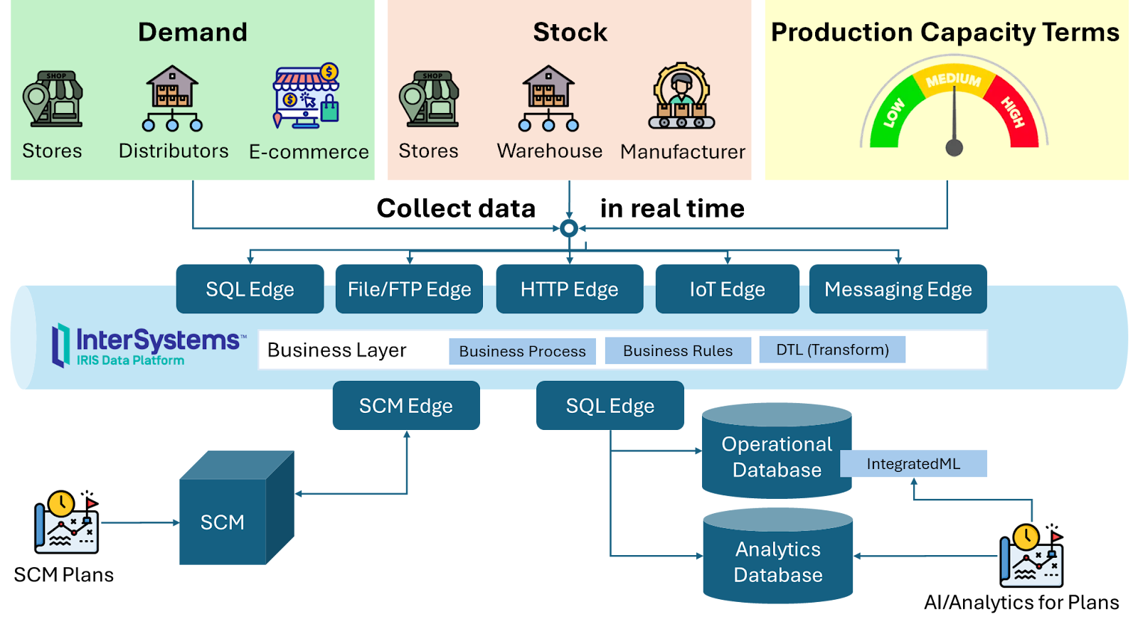 La Chaîne logistique (Supply Chain) désigne l'ensemble des processus et activités réalisés par les divisions commerciales de l'entreprise, ses fournisseurs et ses partenaires (parties prenantes), depuis l'acquisition des matières premières jusqu'à la livraison au consommateur final, en passant par la production. Elle peut être mieux gérée au moyen de solutions SCM orchestrées par InterSystems IRIS: