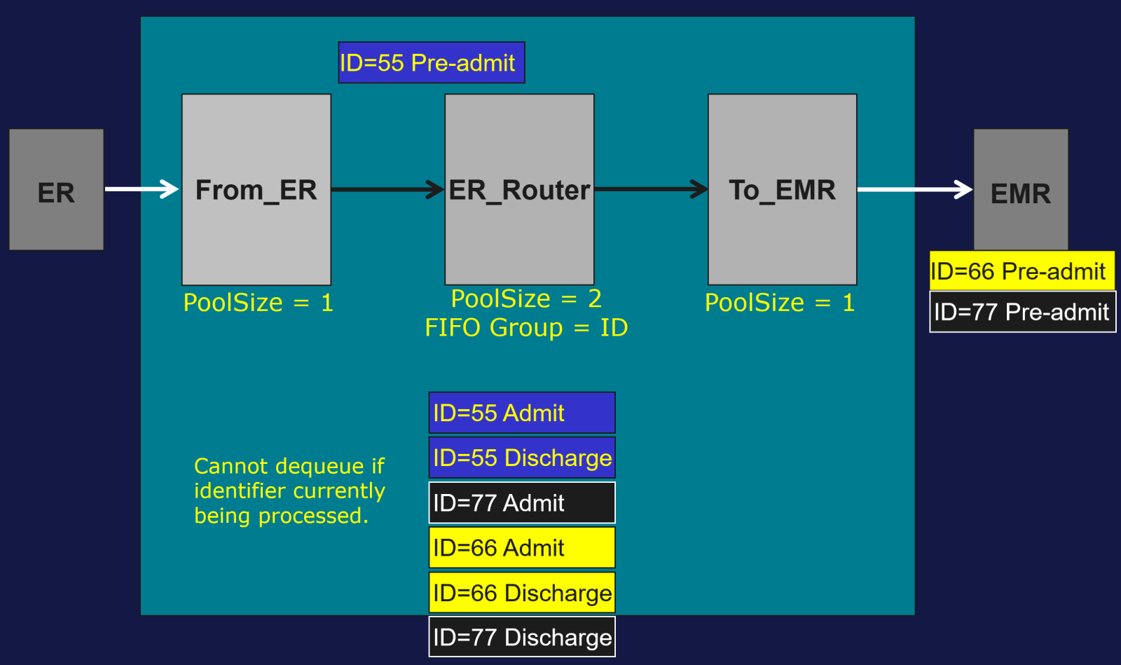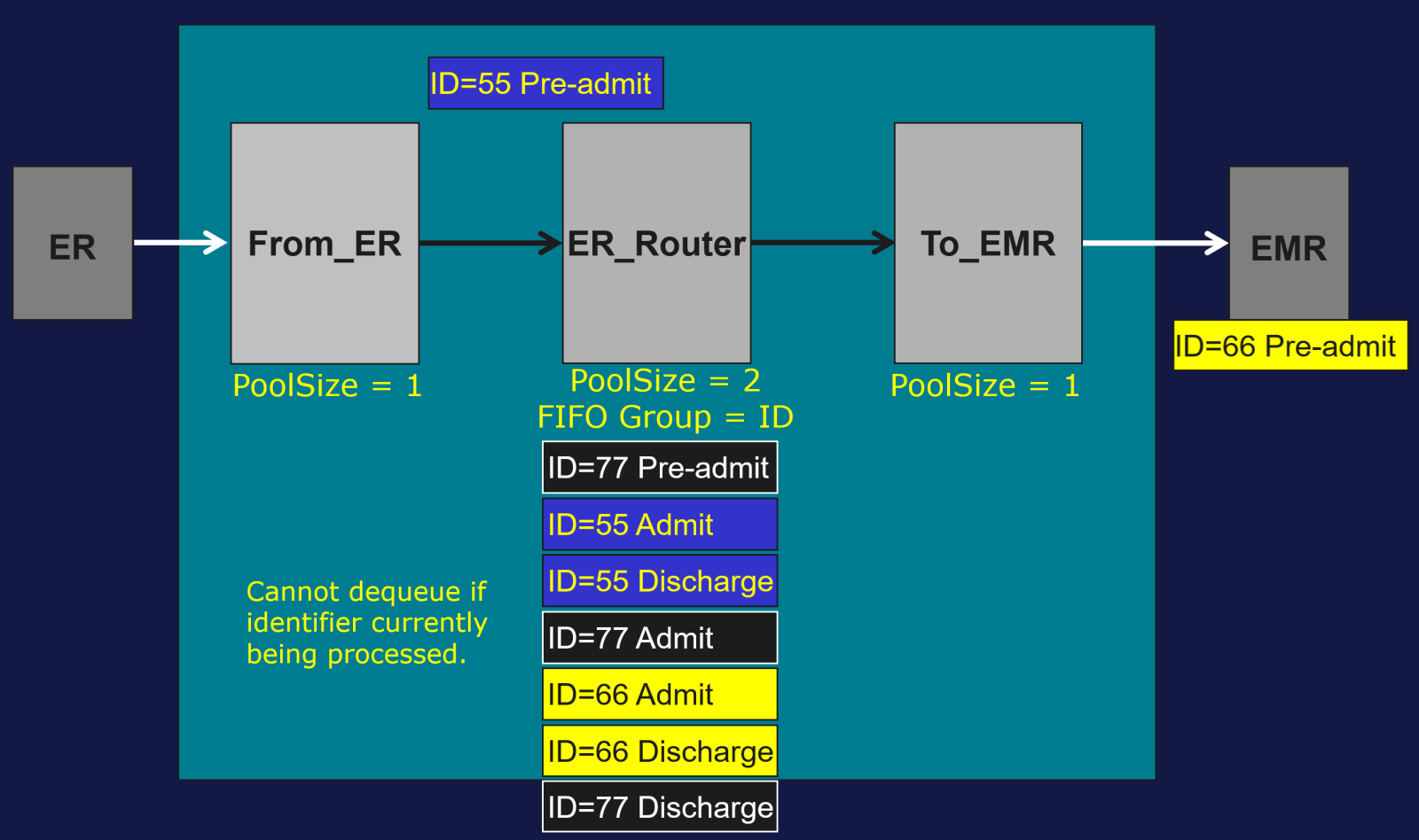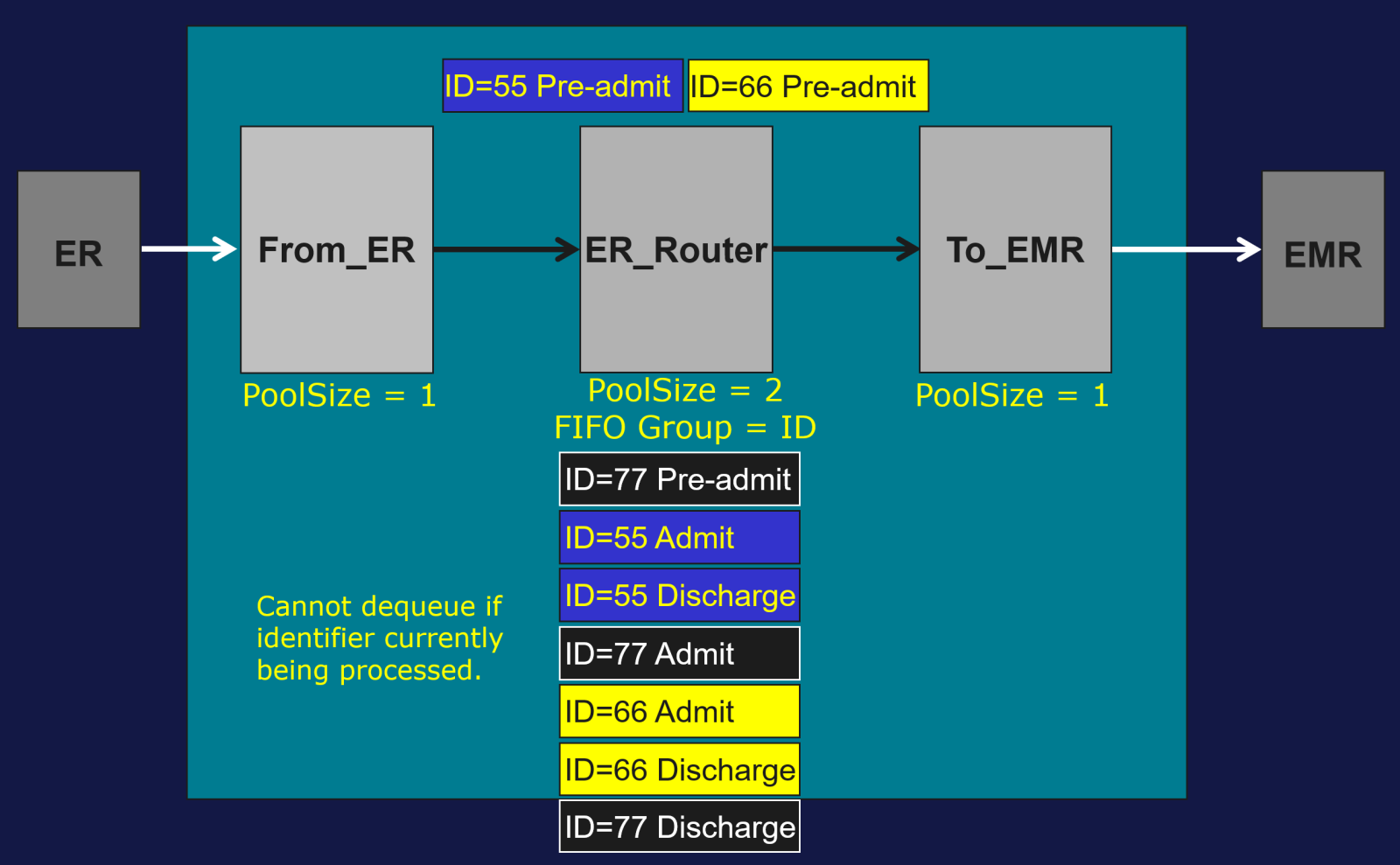 Exemple : l’identifiant du groupe FIFO est l’identifiant patient et le Pool Size = 2