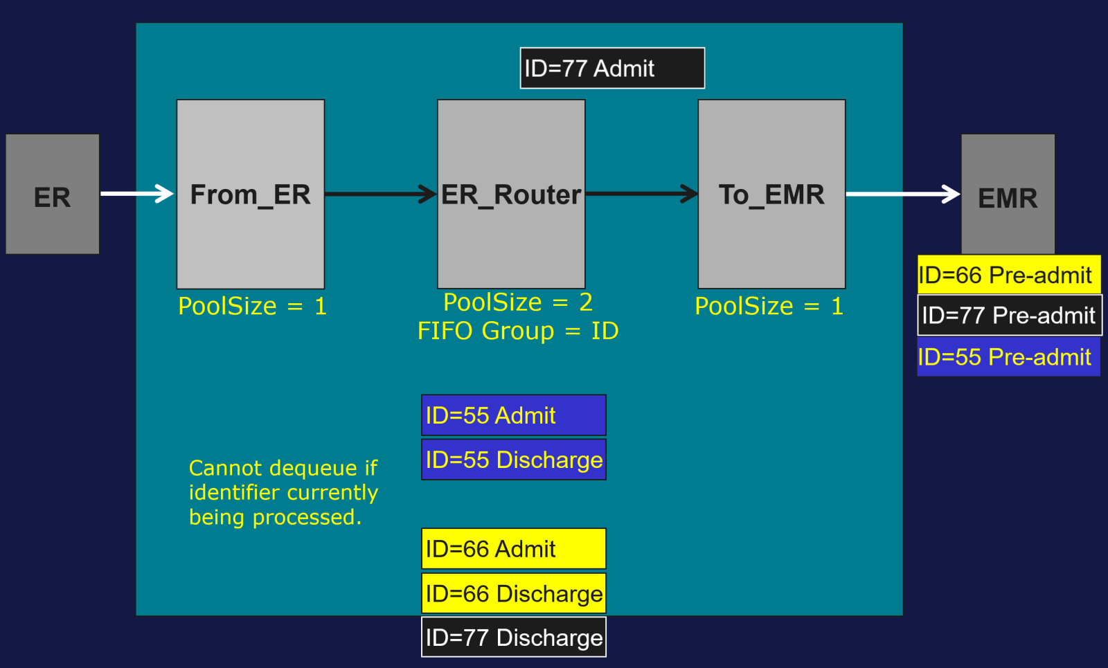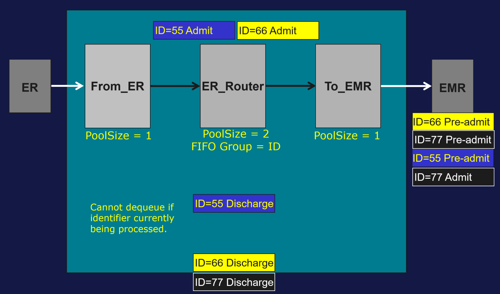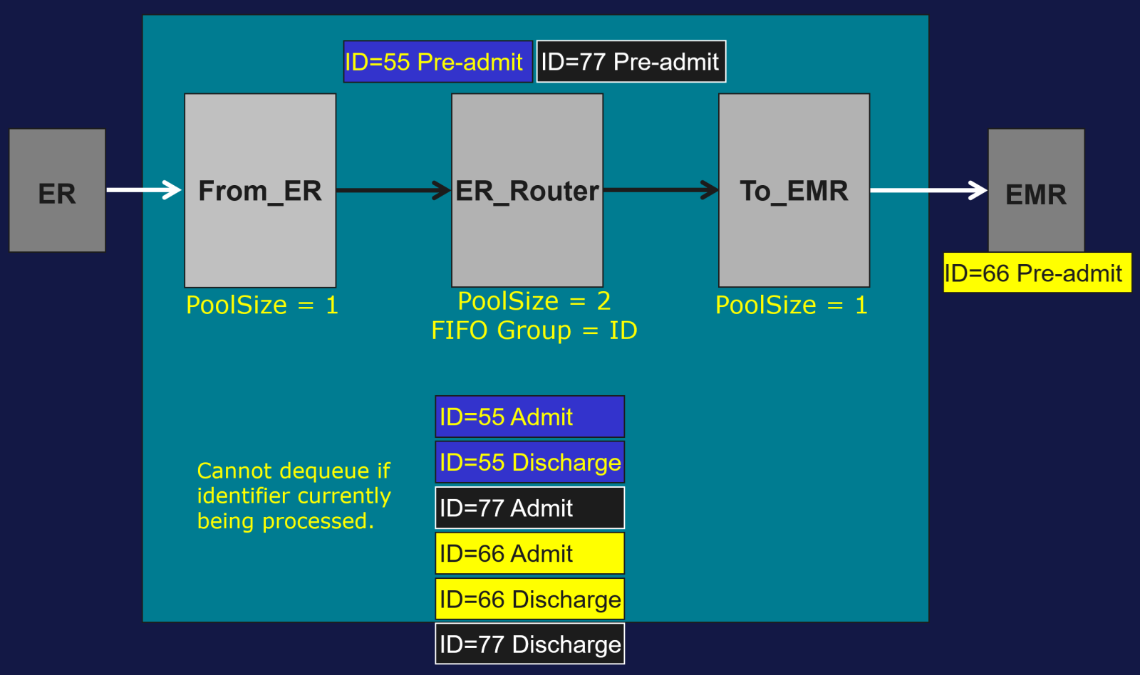 Exemple : l’identifiant du groupe FIFO est l’identifiant patient et le Pool Size = 2