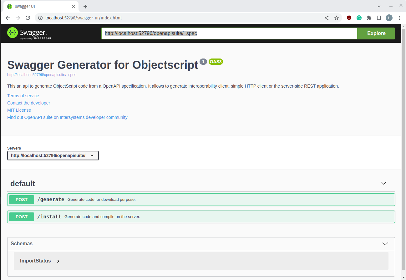 Set ^openapisuite.config("web","enable-install-onserver") = 1Explore the OpenAPI-suite REST API