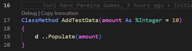 11. Dans VSCode, accédez à Person.cls et exécutez la méthode AddTestData (cliquez sur Debug) avec 20 enregistrements :