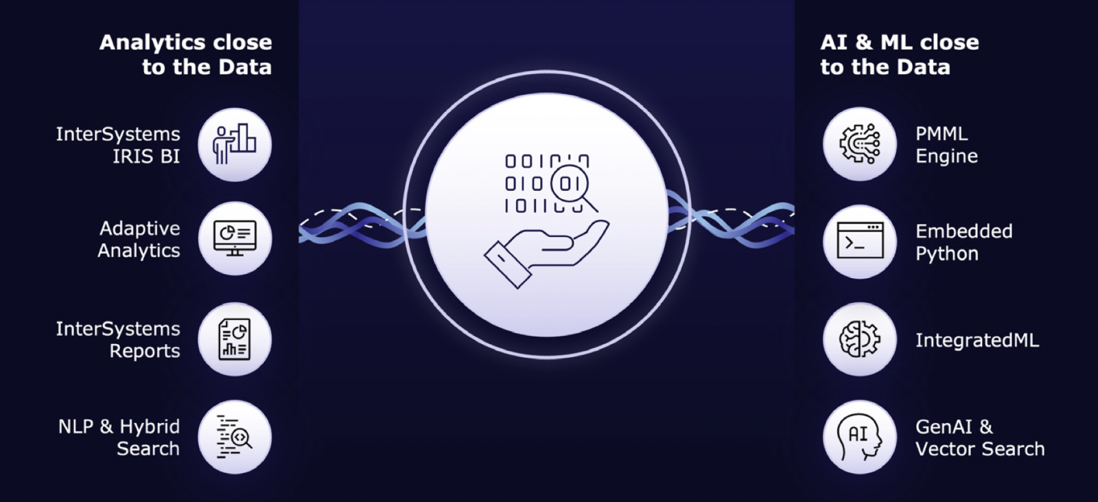 L'interopérabilité InterSystems IRIS s'accompagne d'un ensemble de fonctionnalités analytiques et d'IA intégrées.