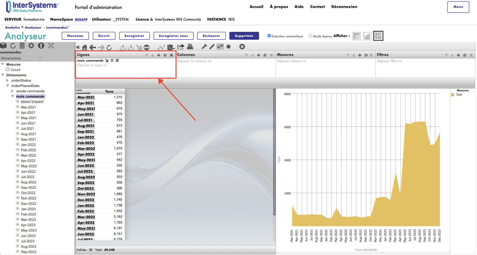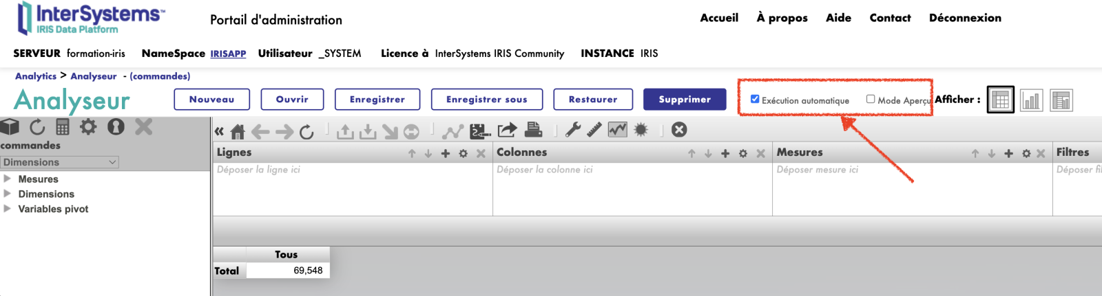 ANALYSEUR est un outil puissant disponible au sein de la plateforme InterSystems IRIS pour fournir des capacités étendues d'analyse et de visualisation des données. Cet outil permet aux utilisateurs de créer des tableaux récapitulatifs et des graphiques pour analyser les données. Il vous permet également de réaliser des études et des analyses détaillées basées sur les données disponibles.