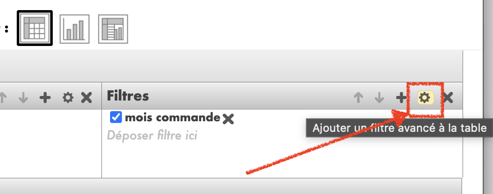 Filtres: Cette option autorise les utilisateurs à appliquer différents filtres et conditions aux données du tableau récapitulatif pour affiner l'analyse. Les utilisateurs peuvent sélectionner des paramètres ou des valeurs spécifiques pour filtrer les données afin d'obtenir une recherche plus précise et ciblée.