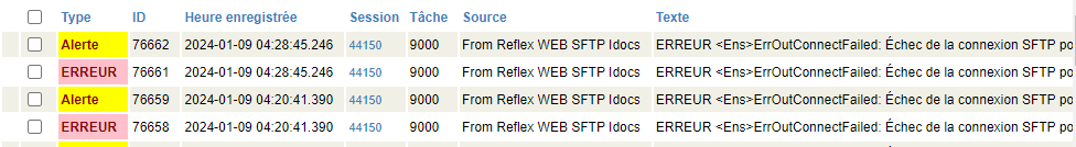 Cependant j'ai la même erreur pour un serveur extérieur avec exactement la même configuration que le premier flux, j'ai contacté leur service infrastructure qui m'ont dit qu'il manquait bien un connexion SFTP à l'heure de l'erreur mais ils n'ont aucune information et rien dans leur logs.