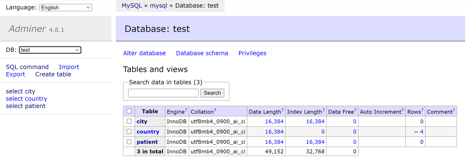 SELECT * FROM test.patient